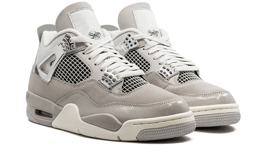 Air Jordan 4 Retro Frozen Moments (2023) ühendab pehmed hallid toonid elegantsete hõbedaste detailidega, luues minimalistliku ja premium-välimusega versiooni klassikalisest AJ4 siluetist. Neutraalne värvipalett muudab mudeli äärmiselt stiilseks ja kergesti kombineeritavaks igapäevases streetwear’i stiilis.
