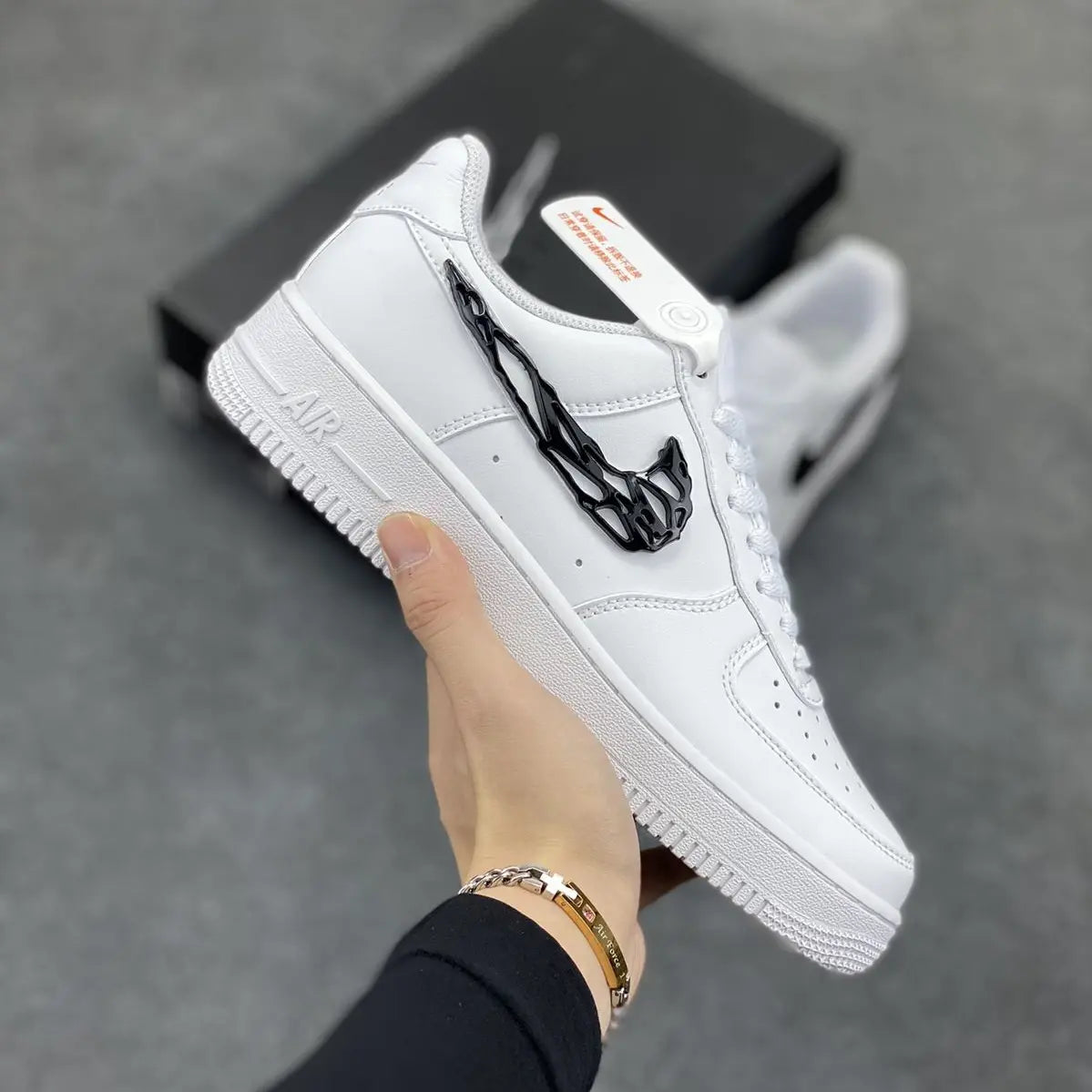 Nike Air Force 1 Low Liquid Metal Swoosh (2025) toob klassikalise valge AF1 silueti esile musta detailiga, mille eriline metallik-Swoosh lisab futuristliku ja stiilse aktsendi igapäevasele kandmisele.
