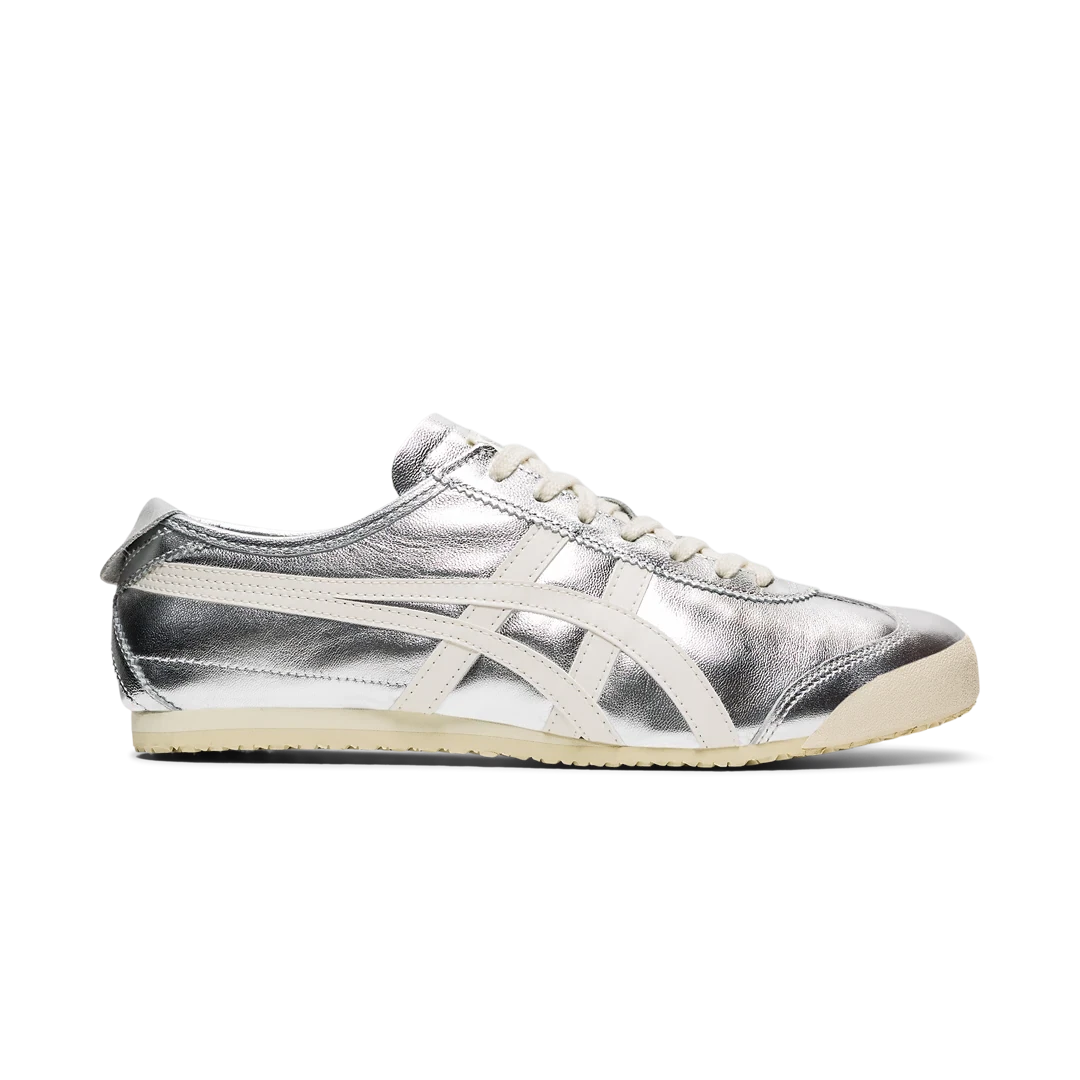 Onitsuka Tiger Mexico 66 Silver Off White pakub ikoonilisele Mexico 66 siluetile pilkupüüdva ja modernse värvitõlgenduse. Metallik-hõbedane pealis lisab jalanõule futuristlikku sära, samas kui Off White detailid tasakaalustavad üldmuljet ja annavad sellele elegantse ning ajatu ilme. Madal profiil, kerge konstruktsioon ja paindlik tald tagavad mugava istuvuse kogu päeva vältel, säilitades samal ajal klassikalise retro-streetwear esteetika. Ideaalne valik neile, kes soovivad eristuda, kuid jääda truuks Onitsuka Tigeri pärandile.