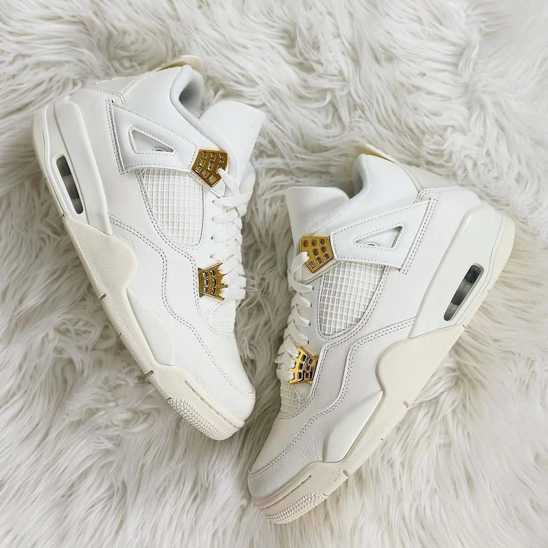 Air Jordan 4 Retro Metallic Gold (2024) toob ikoonilisse siluetti luksuslikku sära, ühendades pehme sail-tooni premium-materjalid kuldsete detailidega. Mustad aktsendid lisavad kontrasti ja sügavust, muutes need jalanõud samaaegselt elegantseks ja sportlikuks. Täiuslik valik neile, kes hindavad AJ4 klassikat modernses võtmes.